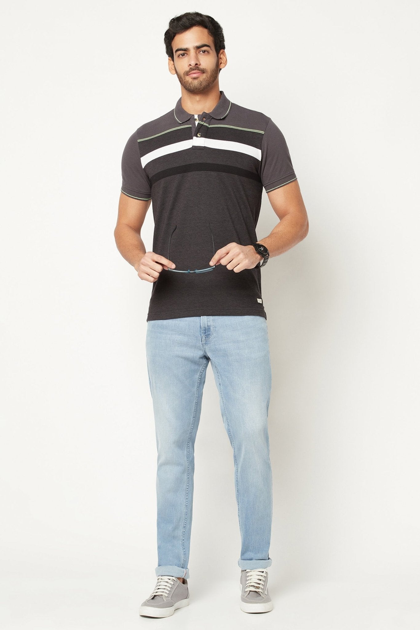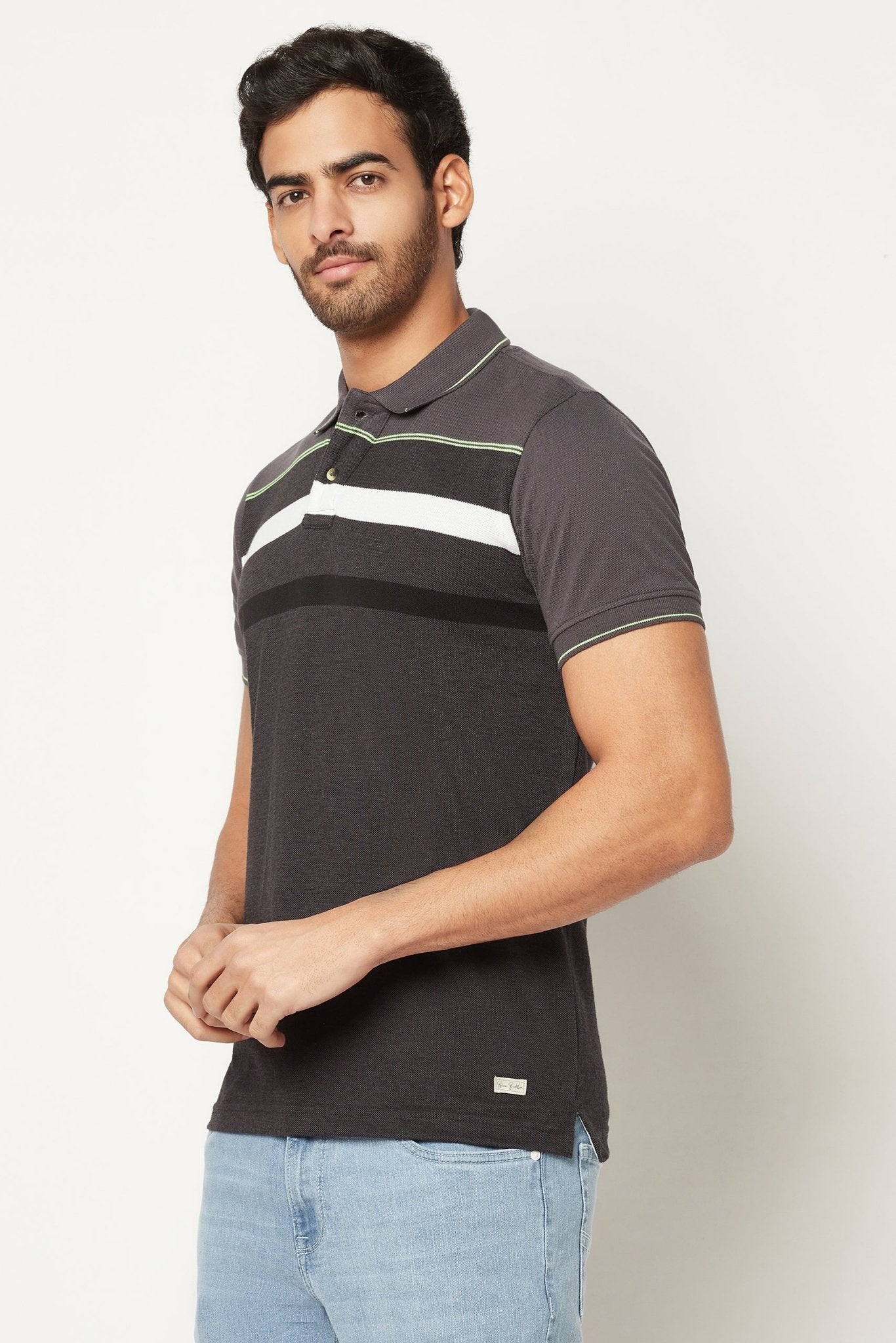 Designed for effortless dressing, this striped polo t-shirt in grey tones is made with breathable cotton for a clean, crisp look.