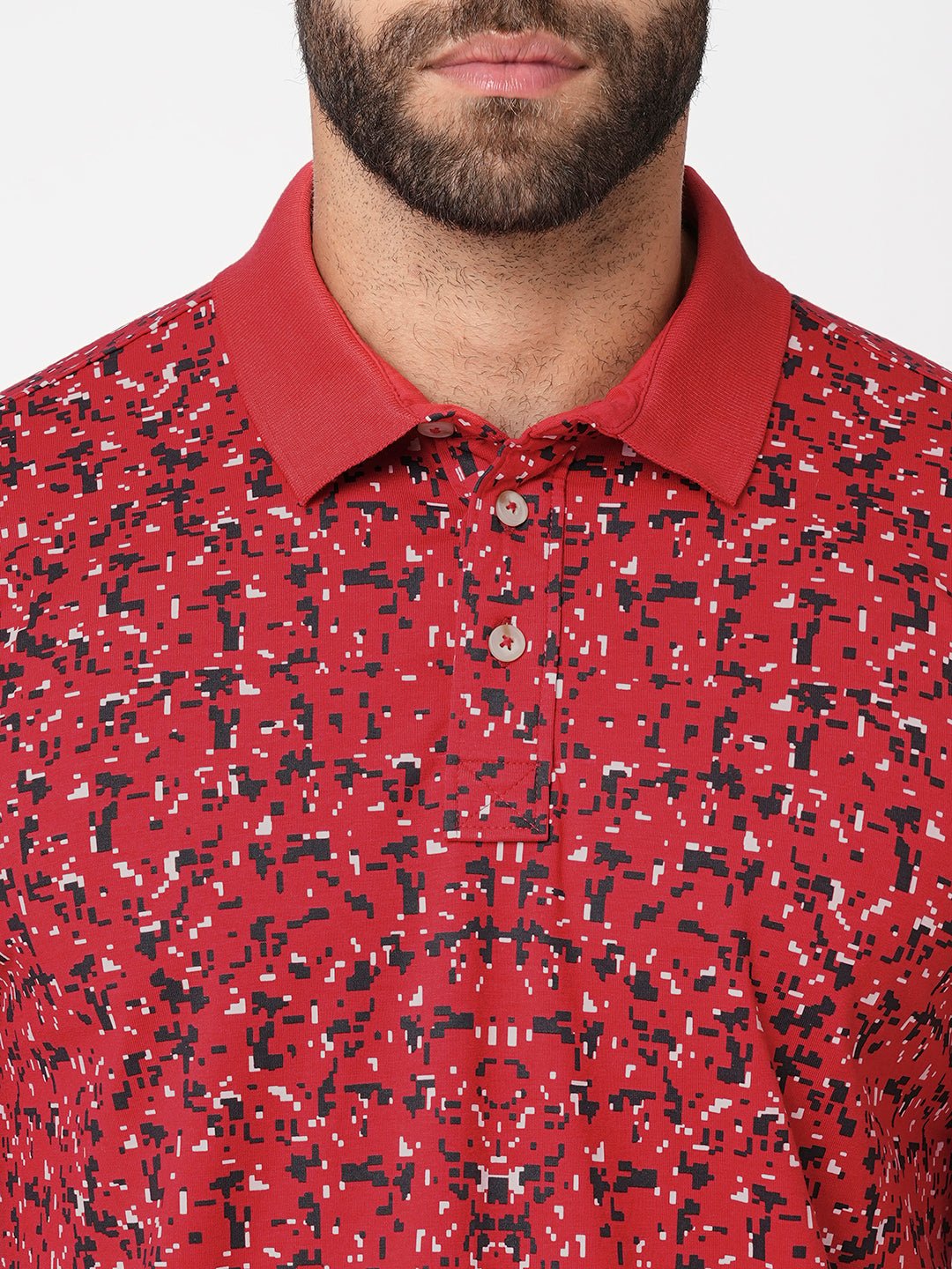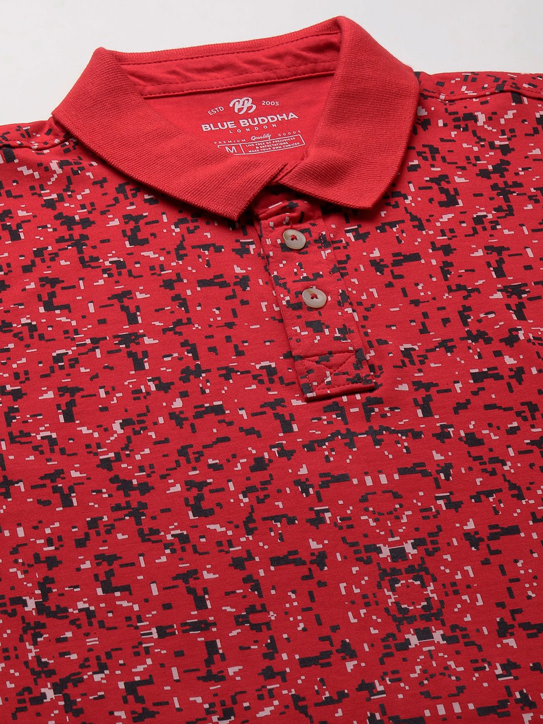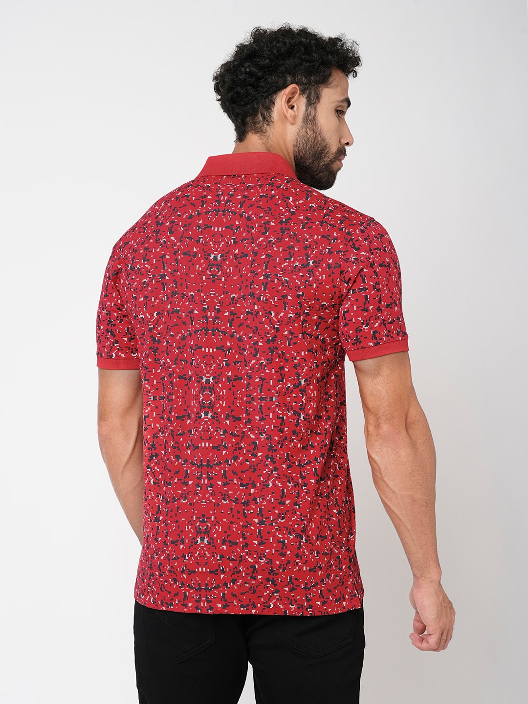 Elevate your casual wardrobe with this red polo t-shirt, featuring a bold pixelated print in black and white. Crafted from breathable cotton fabric, it combines comfort with style and is perfect for everyday wear or smart-casual occasions.