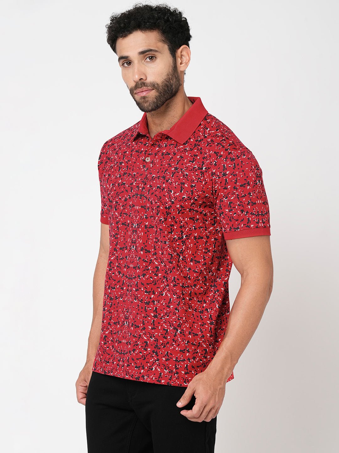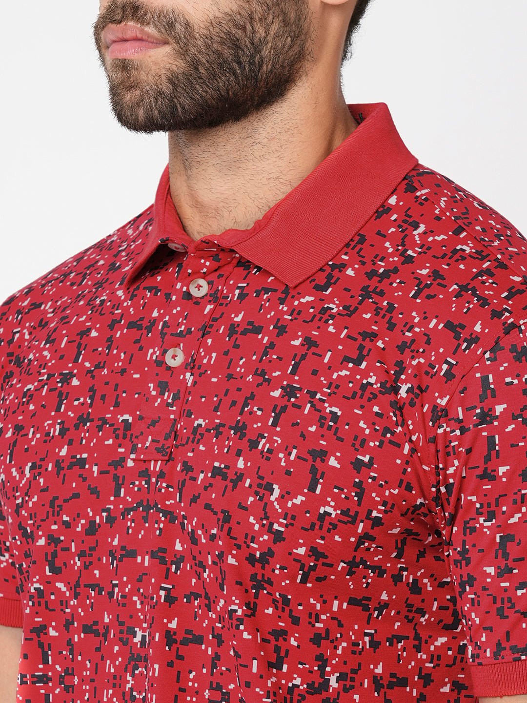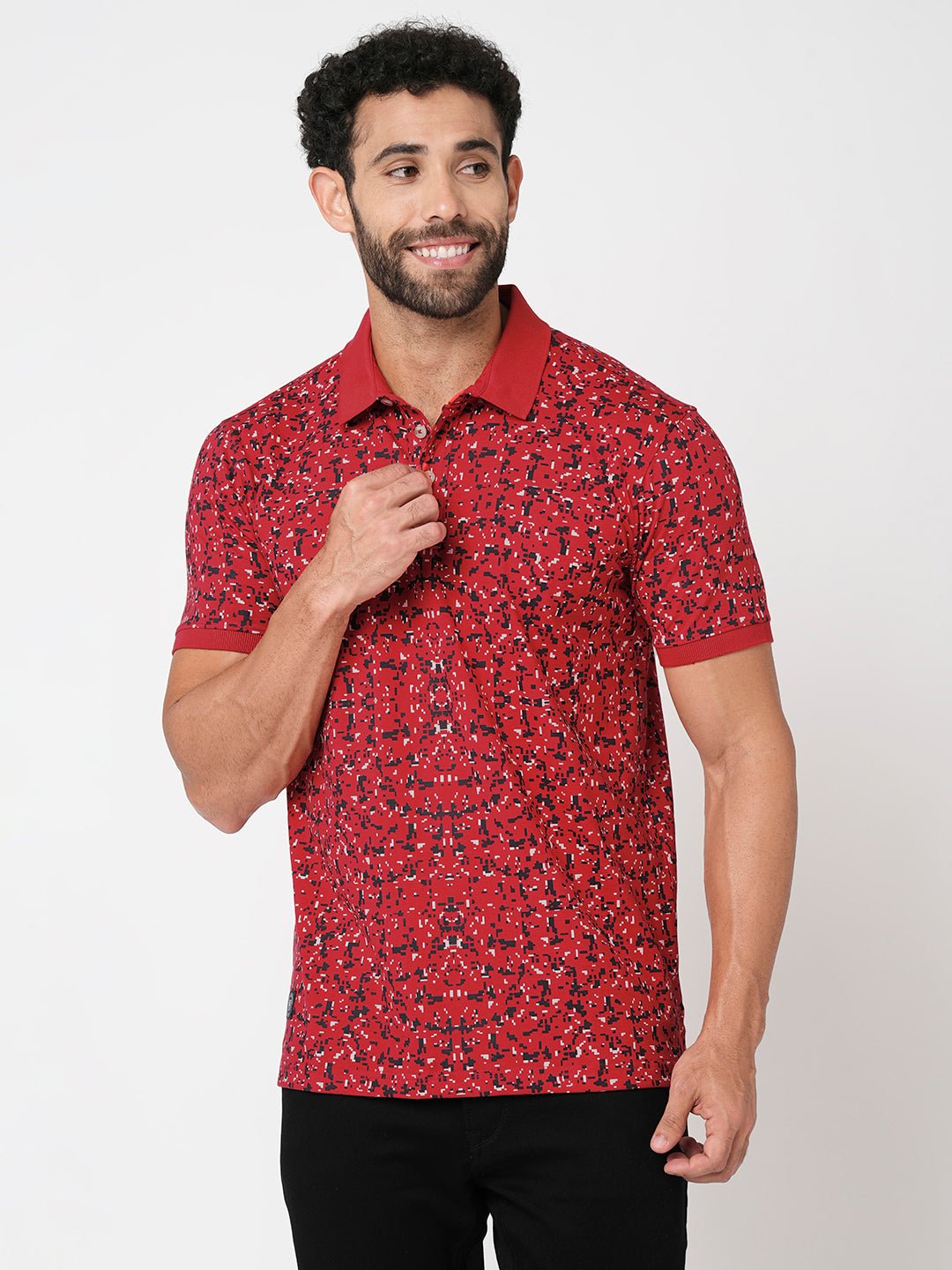 Elevate your casual wardrobe with this red polo t-shirt, featuring a bold pixelated print in black and white. Crafted from breathable cotton fabric, it combines comfort with style and is perfect for everyday wear or smart-casual occasions.