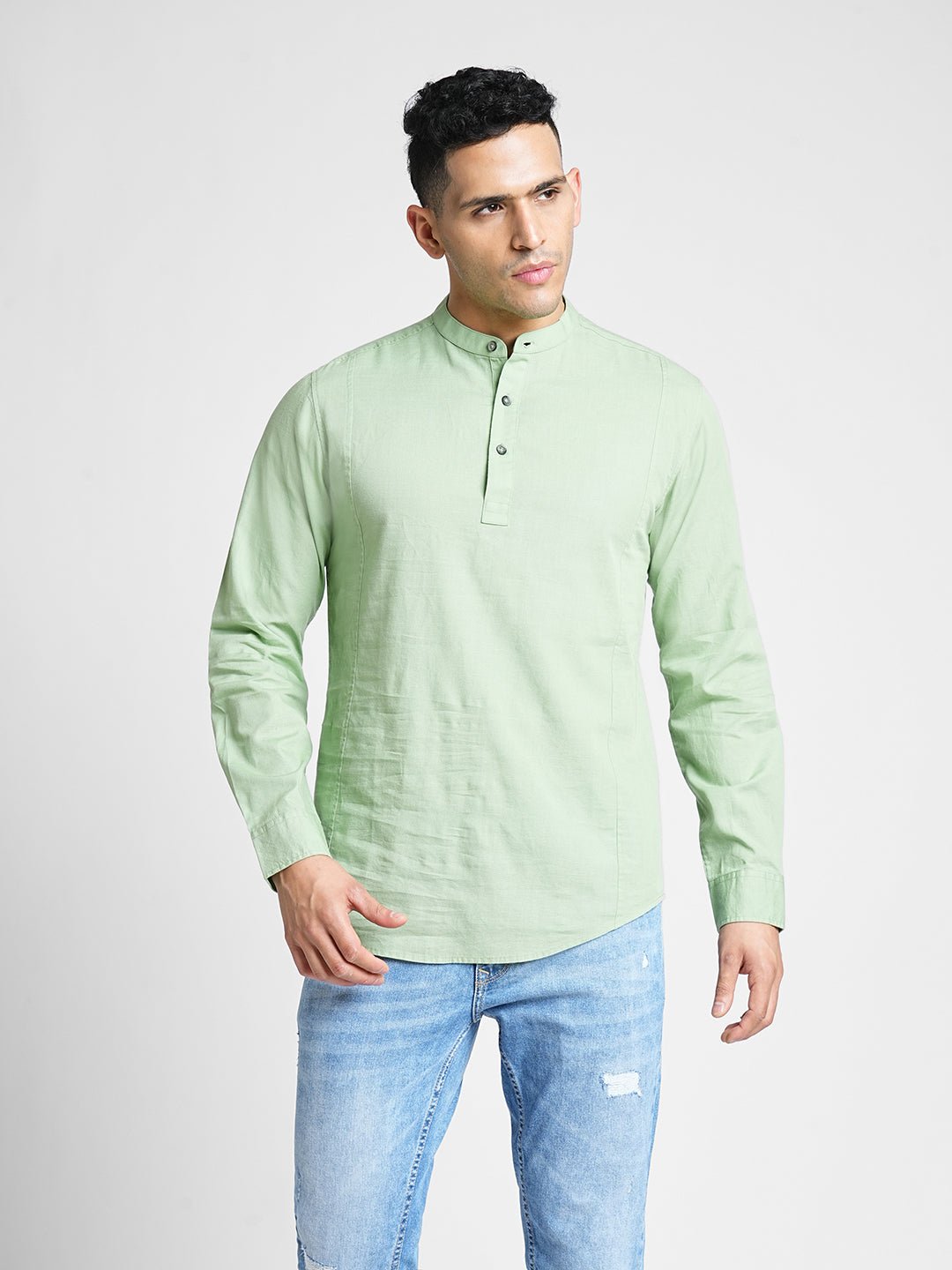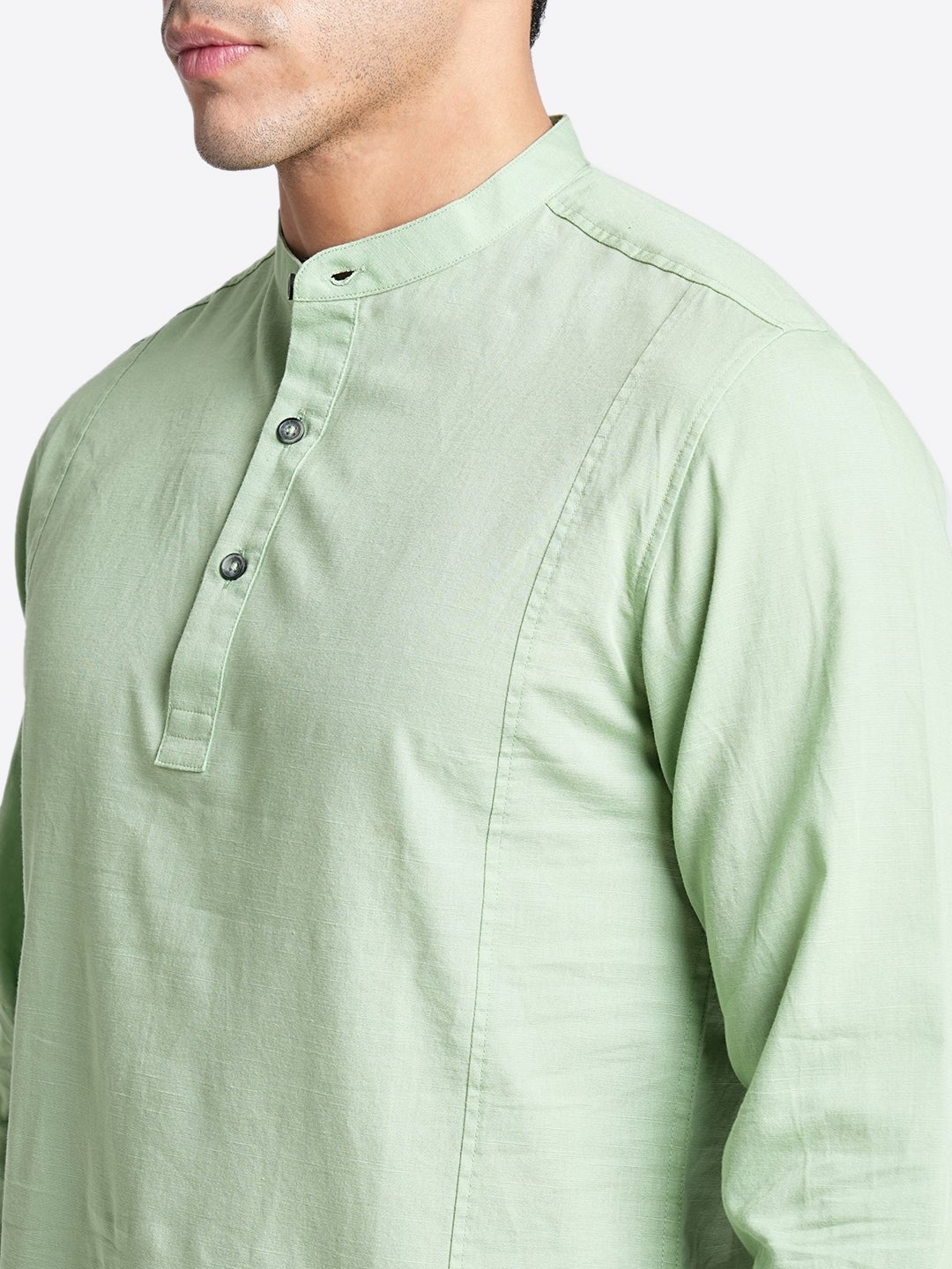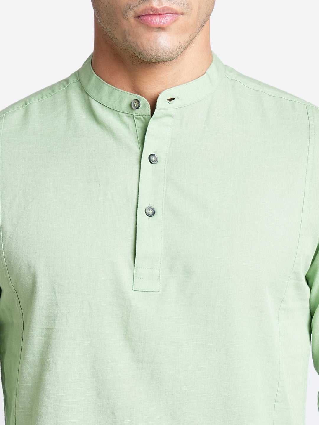 This refreshing mint kurta, featuring a Mandarin collar and buttoned placket, adds a calm elegance to your wardrobe. Perfect for casual outings and festive moments.