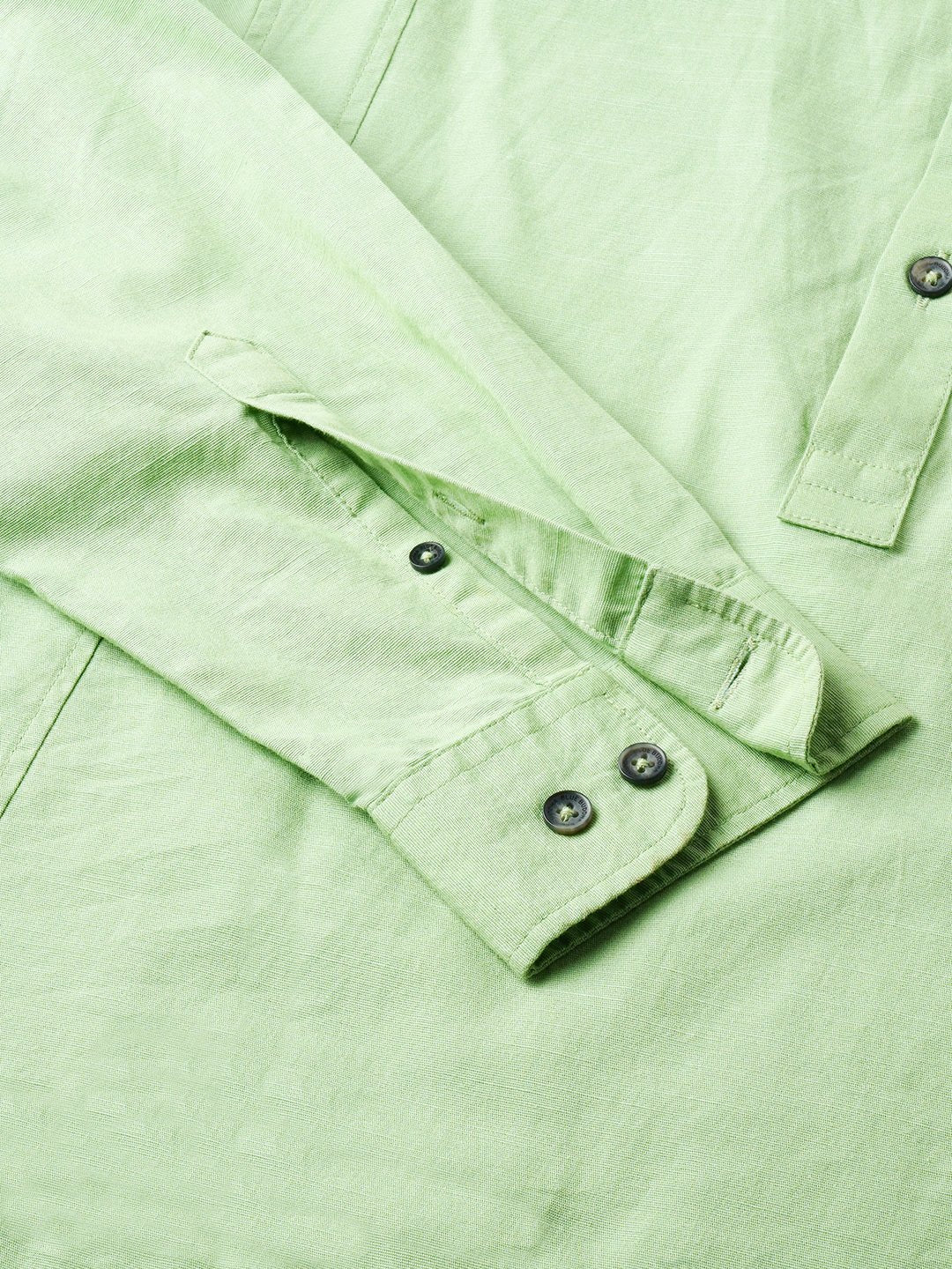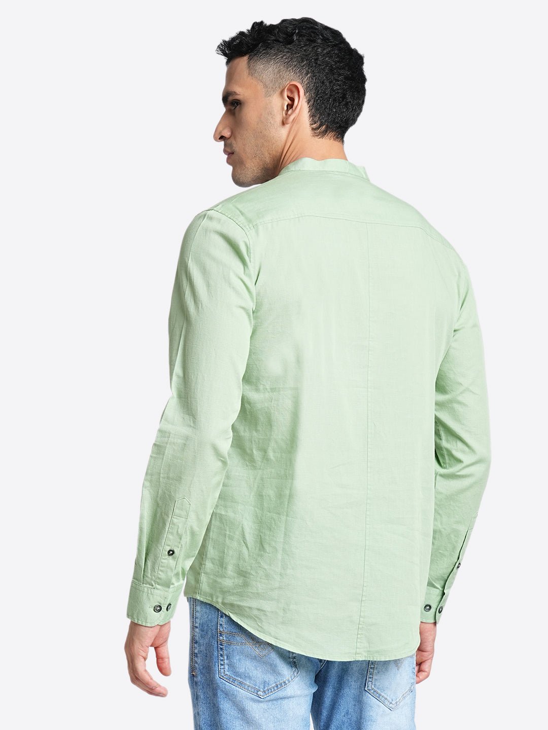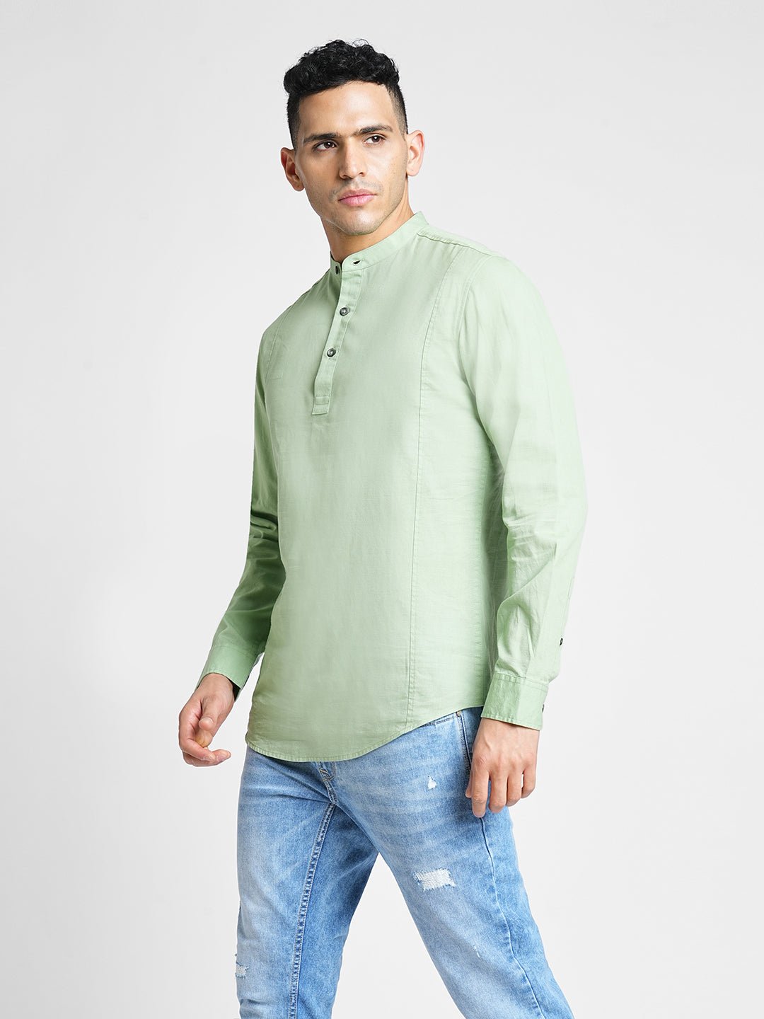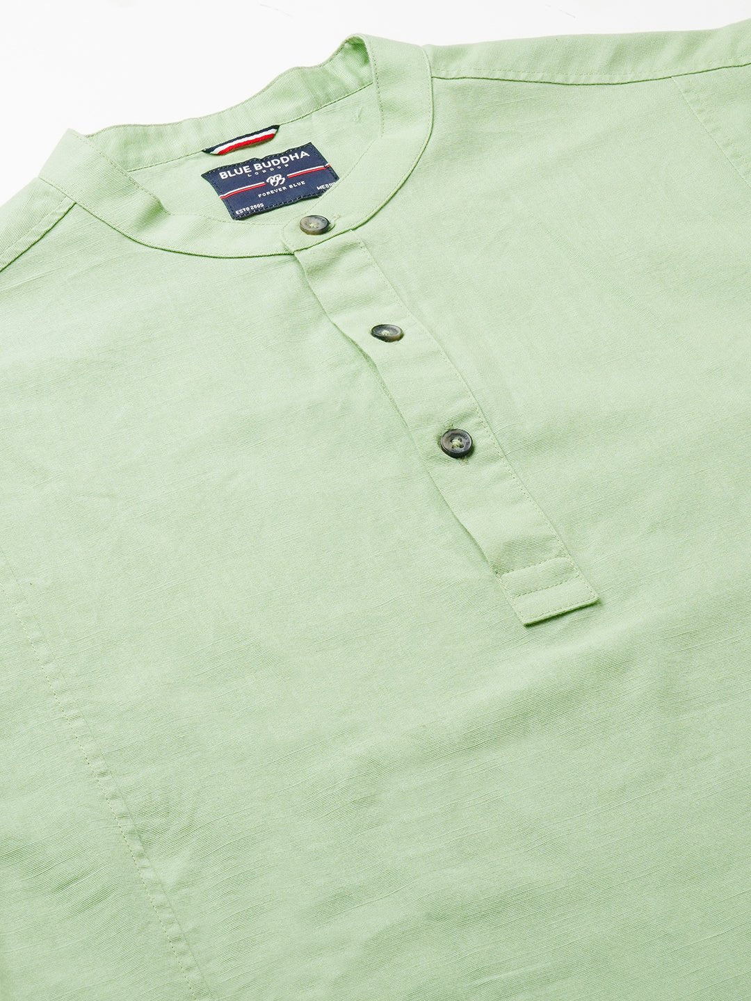 This refreshing mint kurta, featuring a Mandarin collar and buttoned placket, adds a calm elegance to your wardrobe. Perfect for casual outings and festive moments.