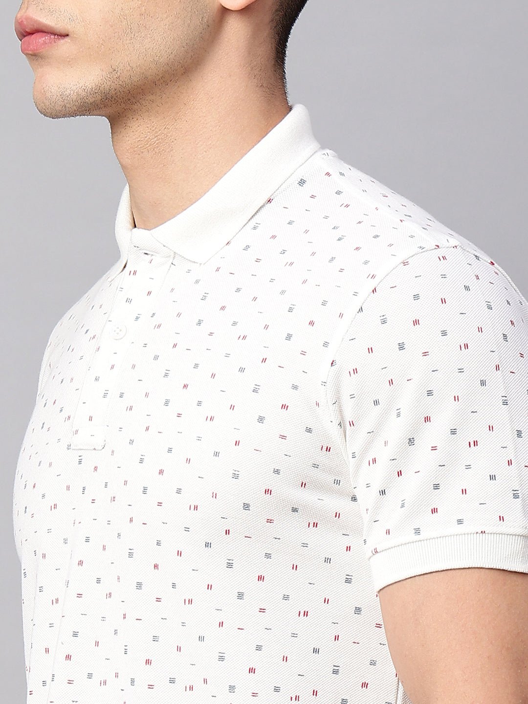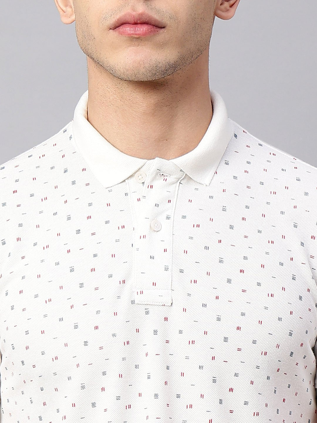 Clean, crisp, and sharply styled‰ÛÓthis white polo T-shirt features a micro geometric print and a structured collar with a buttoned placket. Crafted from breathable, lightweight fabric, it delivers a perfect balance of comfort and contemporary flair.